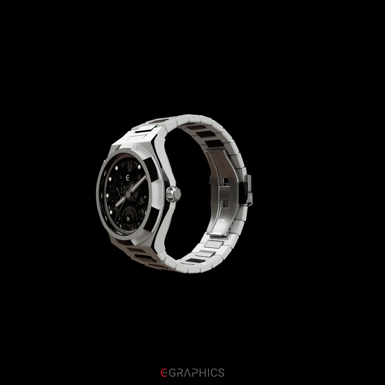 Cette modélisation 3D de montre de luxe, sobre et raffinée, combine innovation technologique et esthétique intemporelle, offrant une expérience visuelle unique.