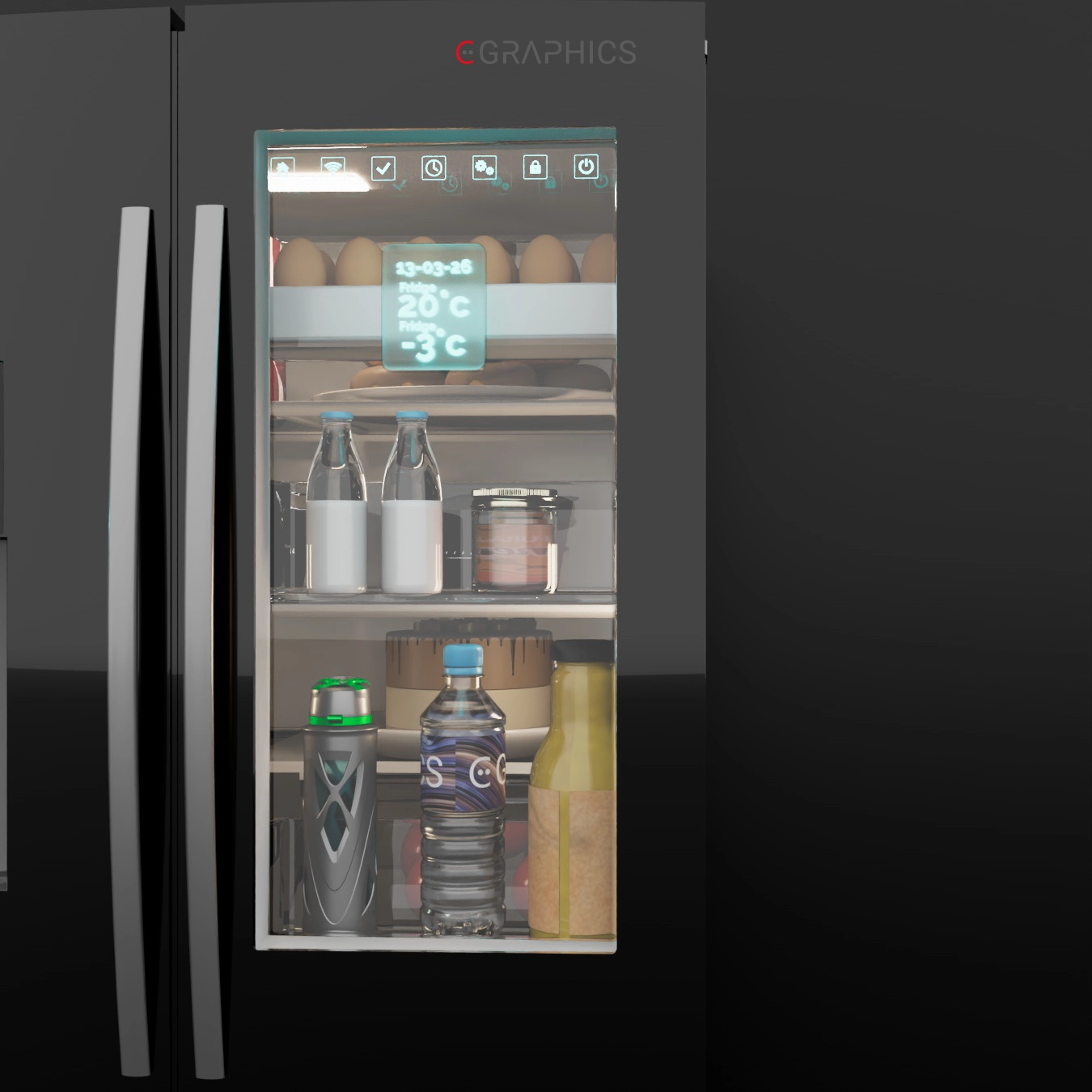 Découvrez ce projet de modélisation 3D photoréaliste d’un réfrigérateur intelligent. L’objectif était de mettre en valeur le design élégant, l’écran transparent interactif et les finitions premium de cet appareil électroménager moderne, idéal pour des présentations produits percutantes.